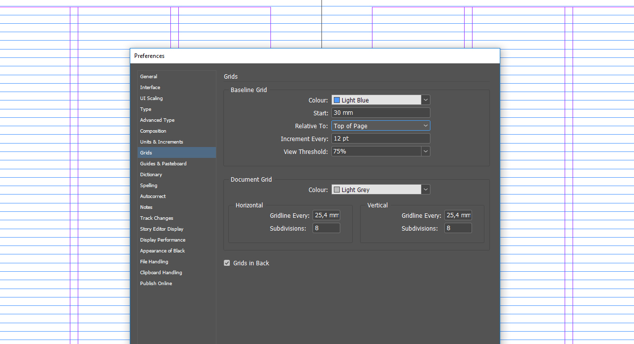 Grundlinjenettet klarer dette detaljearbejde for dig og strukturerer teksten automatisk efter dine definitioner. Derved begrænses grundlinjenettet ikke kun til to sider, men gælder på alle sider, som du opretter eller tilføjer senere.