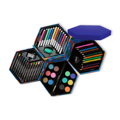 - Information: Farveblyanter, filtpenne, voksfarver, vandfarver, viskelæder, plastblyantspidser, clips