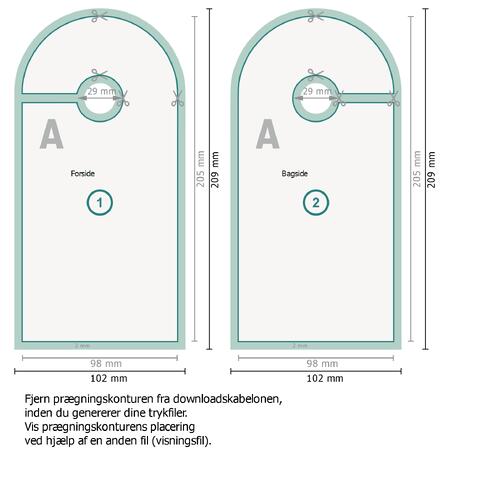 Dørhænger af papir, trykt på begge sider med udskæring.