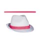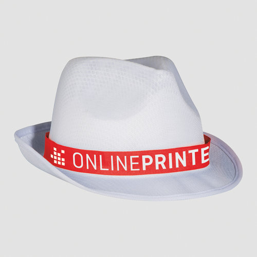 Hvid hat i Memphis-stil med farvet hatbånd.