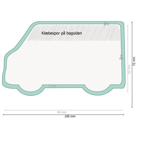 Oplysninger vedr. trykfiler Huskesedler, Varevogn, 9,4 x 5,2 cm, 4/0