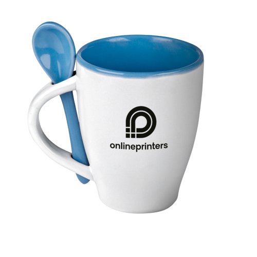 - Elegant keramikkop (kapacitet 250 ml) med integreret ske, der matcher koppens indvendige farve