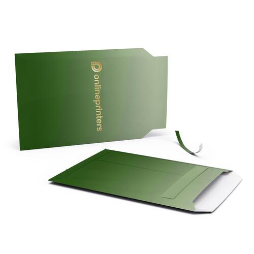 - selvklæbende og med perforering på klappen til at rive dem op (kort side)