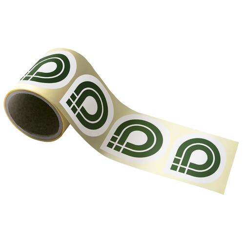 - hvis du ikke vælger banedeling, får du en rulle på 33 cm med en indvendig diameter på 7,6 cm, hvor klistermærkerne placeres ved siden af hinanden