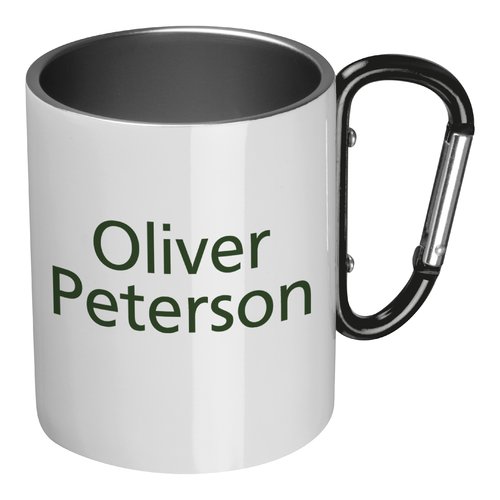 - Drikkeflaske af rustfrit stål med en kulørt aluminiums-karabinhage som kan rumme 300 ml