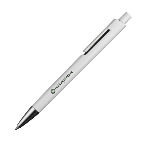- kuglepenne med hvidt skaft, kulørte applikationer og ekstravagant clips