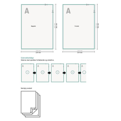 - Siderækkefølge: Siderne skal oprettes fortløbende og enkeltvis.