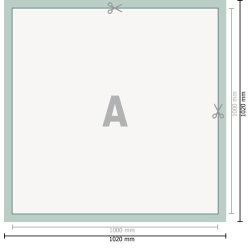 - Dataformat (inkl. 10 mm tryk til kant): 102 x 102 cm