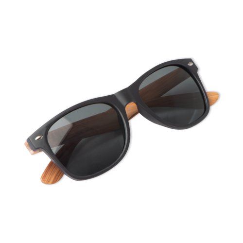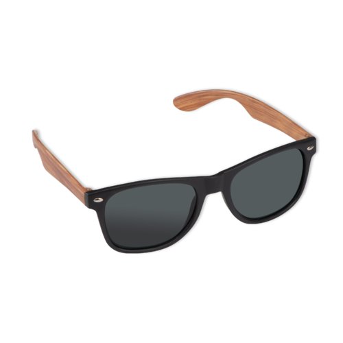• sorte solbriller i klassisk look med plastramme af høj kvalitet og stænger med bambuslook