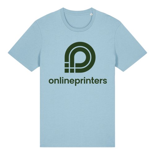 Himmelblå økologisk bomulds T-shirt med korte ærmer.
